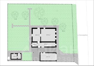 Планировка дома состоит из трёх комнат - кухня-прихожая с выходом в ванную и две спальни. Из кухни, на месте заложенного окна, может быть устроена дверь в большую спальню, чтобы сделать комнаты изолированными - на генеральном плане смотрите возможный вариант расстановки мебели.