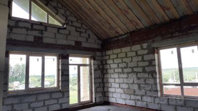 Утеплитель на кровле 250 мм, стены выполнены из пеноблока толщиной 300 мм (так делают только для себя),