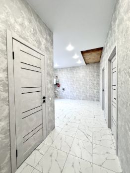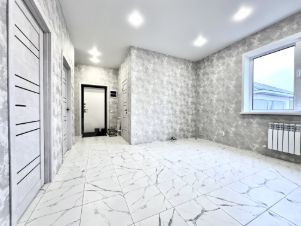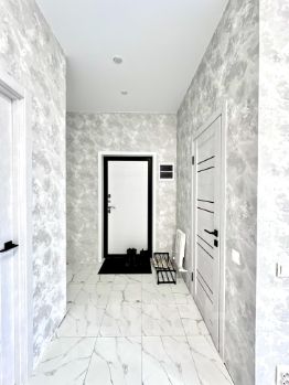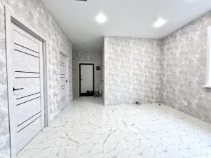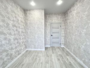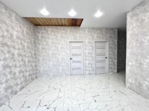 Внутренняя отделка выполнена качественными материалами: ламинатом на полу, хорошими обоями и натяжными потолками.