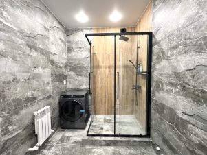 Санитарный узел отделан качественной плиткой, обеспечивающей эстетичный внешний вид и удобство эксплуатации.