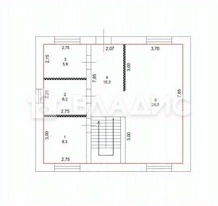 В доме четыре комнаты, жилая площадь составляет 52,6 кв. м, площадь кухни — 28,3 кв. м. Два совмещённых санузла обеспечивают удобство для всех членов семьи.