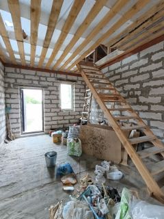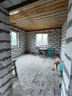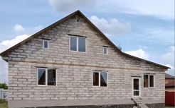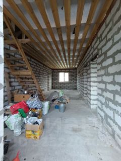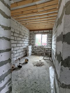 На первом этаже 3 изолированные комнаты площадью 17,2 кв.м, 15,6 кв.м и 14,3 кв.м, кухня-гостиная и веранда с выходом на территорию участка, помещение 40 кв.м с двумя выходами, по желанию можно сделать гараж.