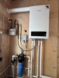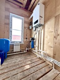 Дом подходит для круглогодичного проживания, обеспечен всеми необходимыми коммуникациями: электричеством, водоснабжением из скважины - 56 метров (второй водоносный слой), газом, канализацией. Отопление осуществляется через индивидуальный двухконтурный котёл, что позволяет эффективно управлять затратами на тепло.