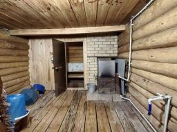 Осинвая супербаня размером 64 кв.м.! Нижний венец дубовый. С просторной зоной отдыха в предбаннике размером 24 кв.м.! Парная. Помывочная. Отопление в предбаннике, батарея. Водопровод. Предбанная территория с зоной отдыха. Рядом зона барбекю.