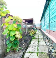 Есть небольшой земельный участок с ухоженными грядками, плодовыми деревьями, ремантантной клубникой. Вдоль дома дорожка с цветущими кустарниками.