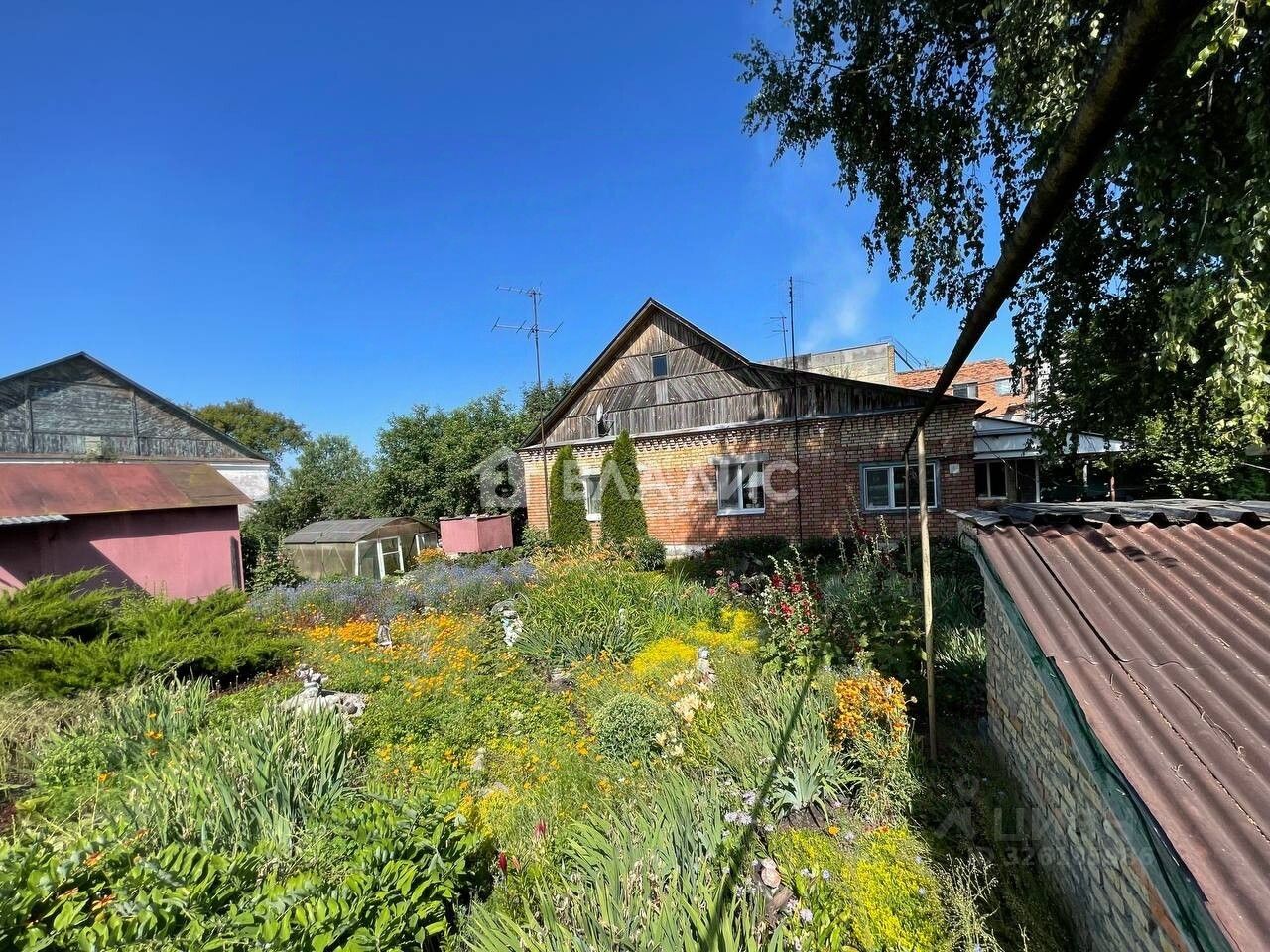 Во дворе размещены баня и беседка. Установлена теплица. Гараж.