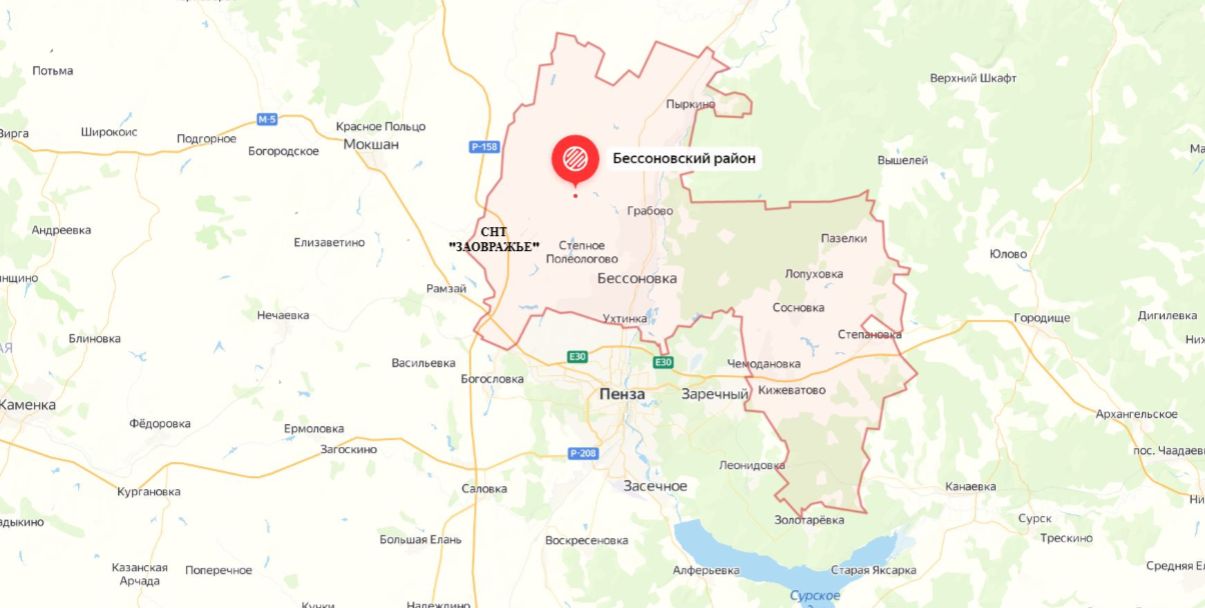 Участок расположен в — садоводческом товариществе Заовражье (Бессоновский район, Пензенская область).