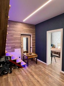 • Свежий Ремонт: Выполнен качественный современный ремонт, поэтому дом полностью готов к проживанию и не требует дополнительных вложений. Стены идеально выровнены и оклеены обоями, на полу уложен ламинат и плитка. Во всех помещениях натяжные потолки и установлены пластиковые окна. Кухонный гарнитур выполнен под заказ, что подчеркивает индивидуальность и функциональность.