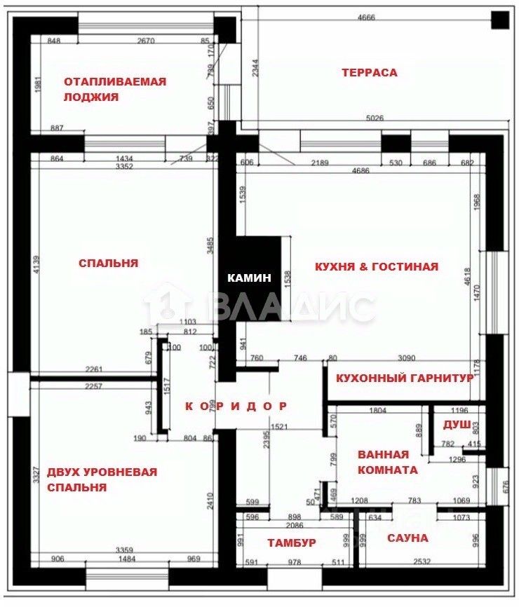 Высота в гостиной - 5 м.