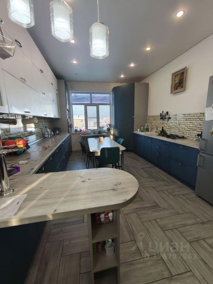 Продается уютный теплый дом площадью 120 м² с современным ремонтом. Построен из пеноблоков в 2017 году, что обеспечивает надежность и долговечность конструкции. Просторные комнаты с большими окнами наполняют пространство естественным светом. На первом этаже расположена светлая гостиная с мягкой мебелью и стильным декором, кухня оборудована современной техникой и барной стойкой.