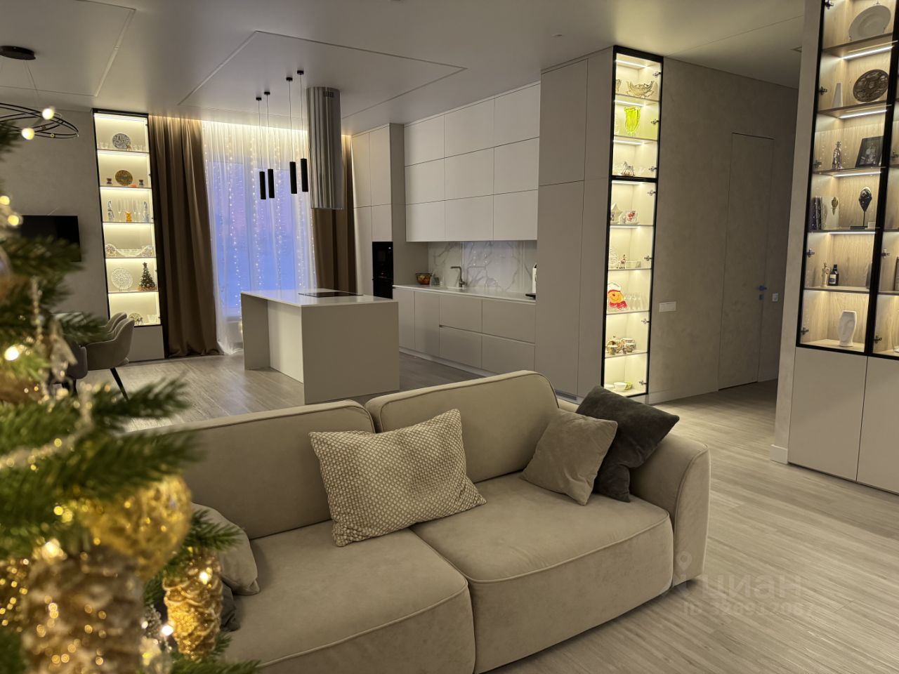 - Кухня-гостиная 60,7 м² с панорамными окнами и видом на город