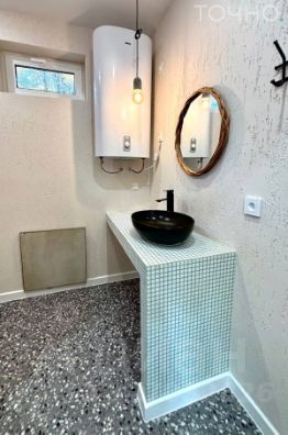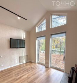 В доме выполнен современный ремонт из качественных материалов. Напольное покрытие - ламинат, стена отделаны штукатуркой. Зона гостиной, санузла и прихожей оборудованы теплым полом, кухня-гостиная с панорамными окнами и каминной зоной, 2 спальни и совмещенный санузел.