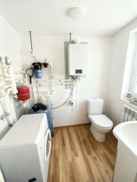 Коммуникации: Центральный газ (экономичное отопление), электричество, вода — собственная скважина (контроль качества!), сливная яма.