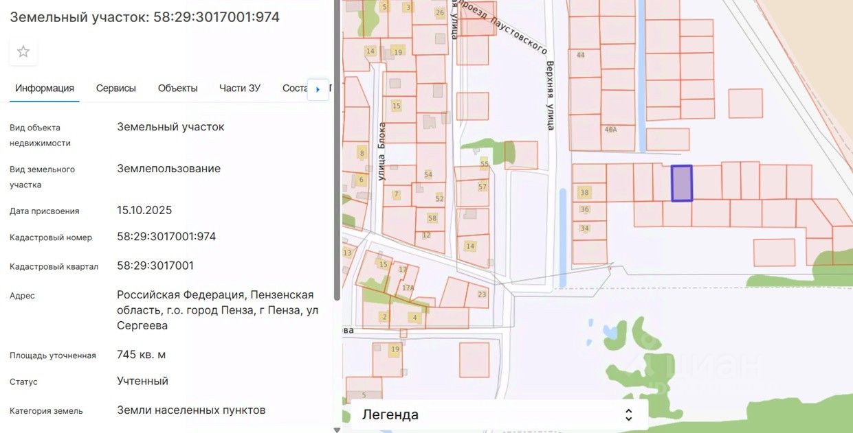 Кадастровый номер: 58:29:3017001:974.