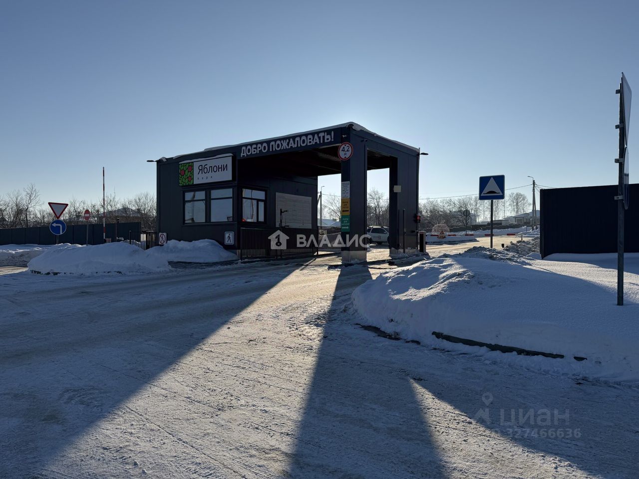 КПП со шлагбаумом, вход по пропускам.