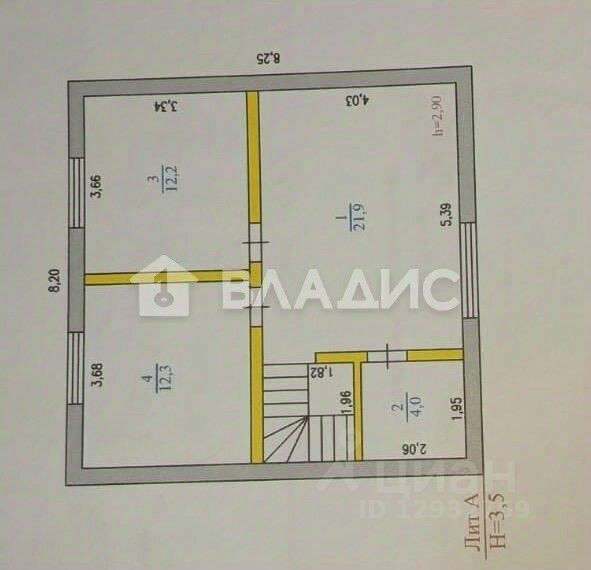 Площадь комнат — 12.3+21.9+12.2+13.1+12 кв.м.