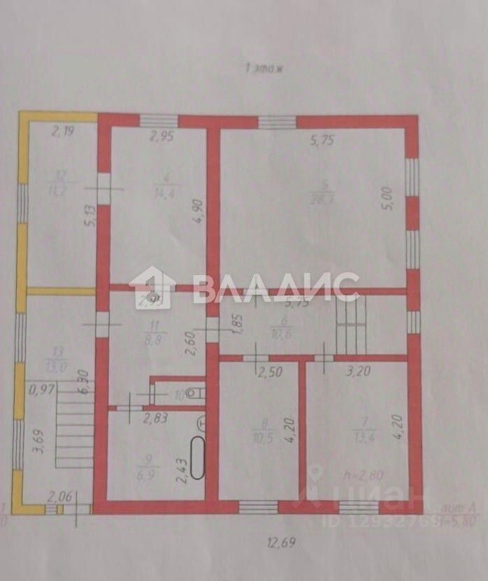 Общая площадь дома (по Росреестру) 182,5 кв.м.