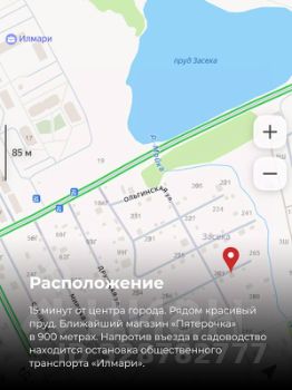 Расположение очень удобное — рядом с городом, что значительно экономит ваше время и топливо. Неподалеку красивый пруд, магазин Пятерочка. Напротив въезда в садоводство находится остановка общественного транспорта Илмари.