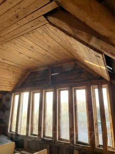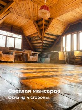 Мансарда светлая, с окнами на все четыре стороны. Внутренняя отделка не завершена, но все материалы для ее окончания уже имеются.