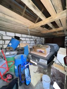 Новый гараж из пеноблока со смотровой ямой и 2 сарая с погребом.