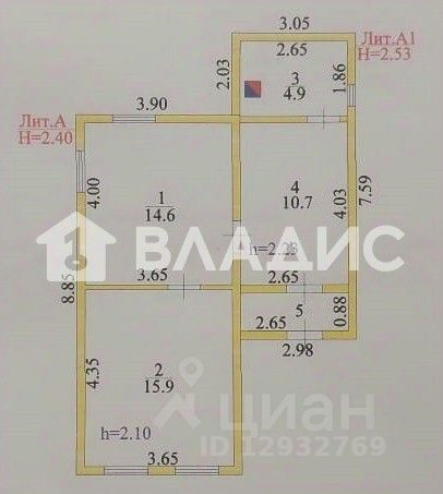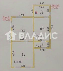 Общая площадь — 48,4 кв.м, из них жилая площадь — 30,5 кв.м. Дом деревянный, построен в 1959 году.