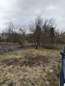 Участок огорожен сеткой. Есть заезд под машину.