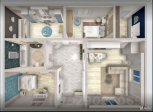 Площадь - 101 м2: 3 комнаты - 13,1 м2; 12,1 м2; 15,1 м2, кухня гостиная - 24,1 м2.