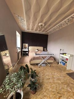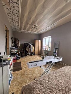 На первом этаже уже есть жизнь: три полноценные комнаты, большая гостиная, объединённая с кухней, отдельные туалет и ванная, прихожая. Ремонт частично сделан — можно въезжать и не спеша доделывать.