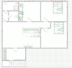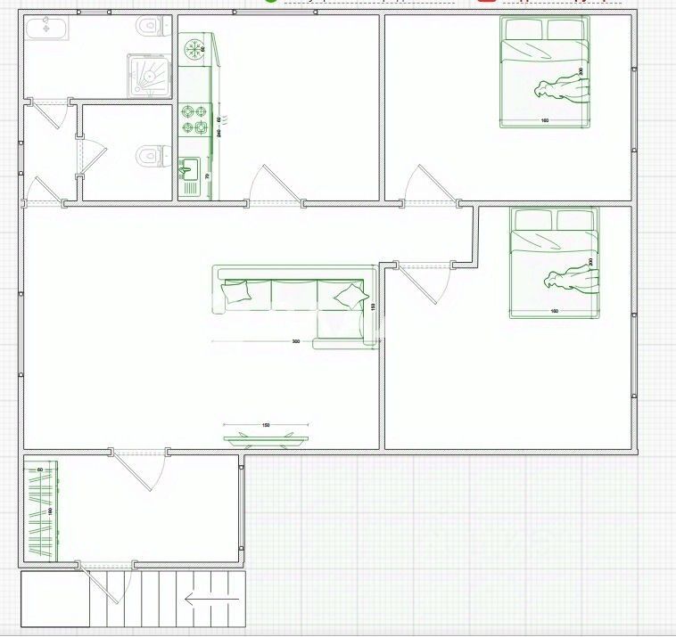 В доме имеется тамбур, большая гостинная, 2 санузла, кухня, 2 жилых комнаты.