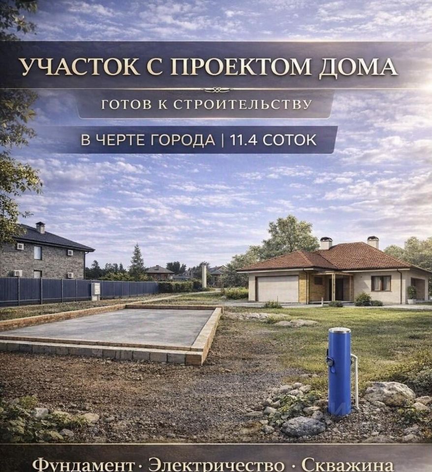 Продается участок 11.4 сотки ИЖС с фундаментом и проектом дома