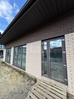 1. Энергоэффективность и ресурс: Ленточный фундамент + ФБС в цоколе. Стены — красный пустотелый кирпич 380 мм (Саранск). Плиты перекрытия — бетон. Кровля — гибкая черепица IKO (Бельгия). Окна VEKA (везде!) + на 2-м этаже панорамное теплое металлическое окно во всю стену.
