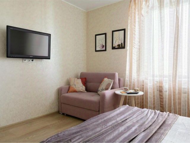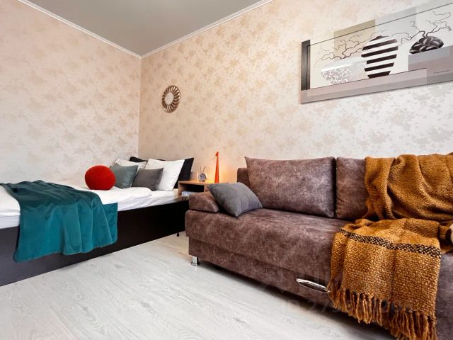 Возможно размещение до 5 гостей, спальные места - двуспальная, односпальная кровати и раскладной диван. К услугам гостей: оборудованная кухня с необходимой бытовой техникой (микроволновая печь, духовой шкаф, электрический чайник, посуда), кондиционер, телевизор, санузел.