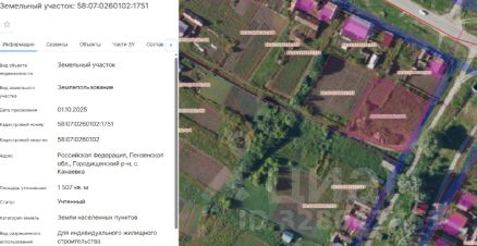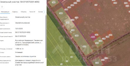 Лот 3: земельный участок, государственная собственность на который не разграничена, свободный от прав третьих лиц, площадью 1000 (одна тысяча) кв.м., из категории земель - земли населенных пунктов, с кадастровым номером 58:07...