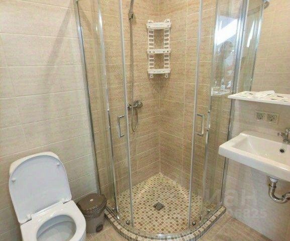 В ванной: туалет, раковина, зеркало, тапочки, душ или ванная, средства личной гигиены.