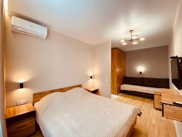 Сдаётся собственная новая квартира премиум - класса с ЕВРО ремонтом, кондиционером и красивым видом с балкона в северной части города Тамбова (рядом с выeздом из гoродa в cтoрoну Mocквы). Бесконтактное заселение. Отчётные документы для кoмaндиpoвaнных. Кондиционер Квартира в идеальном состоянии, с высококачественной отделкой. В квартире имеется вся необходимая мебель и техника для комфортного и длительного проживания! 4 спальных места (двуспальная кровать и двуспальный диван). ВСЯ МЕБЕЛЬ И ТЕХНИКА НОВАЯ! Индивидуальное отопление (всегда есть горячая вода). WI-FI и цифровое ТВ (Hyundai на 43 и Smart TV) + онлайн-кинотеатр Okko Для вас всегда: чистое и отглаженное постельное бельё и полотенца; новая кровать с новым отличным матрасом для вашего комфортного отдыха, крепкого и здорового сна и приятного времяпровождения; жалюзи blackout помогут выспаться даже днем, полностью исключив дневной свет, фен, утюг, гладильная доска, сушилка для белья, стиральная машинка автомат ATLANT на 5 кг; микроволновая печь, электрический чайник; комплект посуды: тарелки, ложки, вилки, кружки, сковородки, кастрюли, бокалы; в кухонном шкафчике вас всегда ждут хороший чай и вкусный ароматный кофе, чтобы вы могли насладиться самыми ценными моментами отдыха. в ванной комнате мы подготовили для каждого гостя средства личной гигиены. Лоджия с красивым видом на футбольный манеж и Олимпийский парк. Около дома большая автомобильная парковка, автобусная остановка, рядом тренажерный зал, баня, магазин, аптека. Удобный выезд на окружную авто дорогу! Есть возможность дистанционного заселения. Рядом находятся: Футбольный манеж, спортивно - тренировочный центр, центр единоборств, бассейн, ледовая арена Радужное, Фитнес-клуб "Прайм Фитнес", гипермаркет Европа", "Магнит", "Пчёлка", рынок "Сытый Базар", аптеки, магазины круглосуточно... Кафе - ресторан "Дебют", Семейный ресторан Pro Плов, ресторан Хочу Харчо, бар Назад в СССР, кафе "Старик Хинкалыч", кафе Итальянский дворик, пиццерия "Жар - Пицца", KFC... СТОИМОСТЬ ВАШЕГО ВАРИАНТА ЗАВИСИТ ОТ КОЛИЧЕСТВА ГОСТЕЙ, СРОКОВ ПРОЖИВАНИЯ, ДНЯ НЕДЕЛИ, ПРАЗДНИКОВ И СПРОСА. Стандартное время заезда - 14:00. Стандартное время выезда - 12:00. Точное время заезда и отъезда согласовывается по телефону. При заселении необходим паспорт! ВНИМАНИЕ! Квартира не сдается для проведения увеселительных мероприятий, лицам в нетрезвом состоянии, компаниям и гостям моложе 20 лет. За присутствие в квартире посторонних лиц (должно быть столько гостей - сколько в заявке) - штраф 2000 и выселение без возврата арендной платы за непрожитые предоплаченные дни. При заселении необходим паспорт (без документов не заселяем)и залог 2000₽ (который возвращается при условии соблюдения всех правил проживания при выезде ) Для постоянных клиентов скидки! Мы всегда рады видеть Вас! Проживание у нас доставит вам эстетическое удовольствие