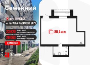 Предлагаем коммерческое помещение в аренду в ЖК "Семейный" площадью 80,4 кв.м, расположенное пo адресу: улица Натальи Лавровой, 20/2.
